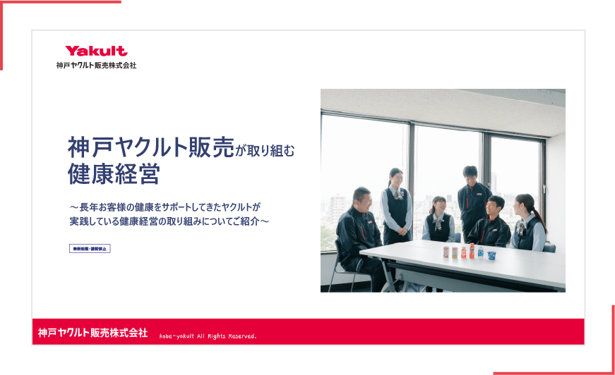 従業員への健康投資を行う事は、従業員の活力向上や生産性の向上等の組織の活性化をもたらし、業績向上や企業価値の向上につながります。従業員の皆さまの健康促進・パフォーマンス向上をヤクルト製品を通じてお手伝いをいたします。